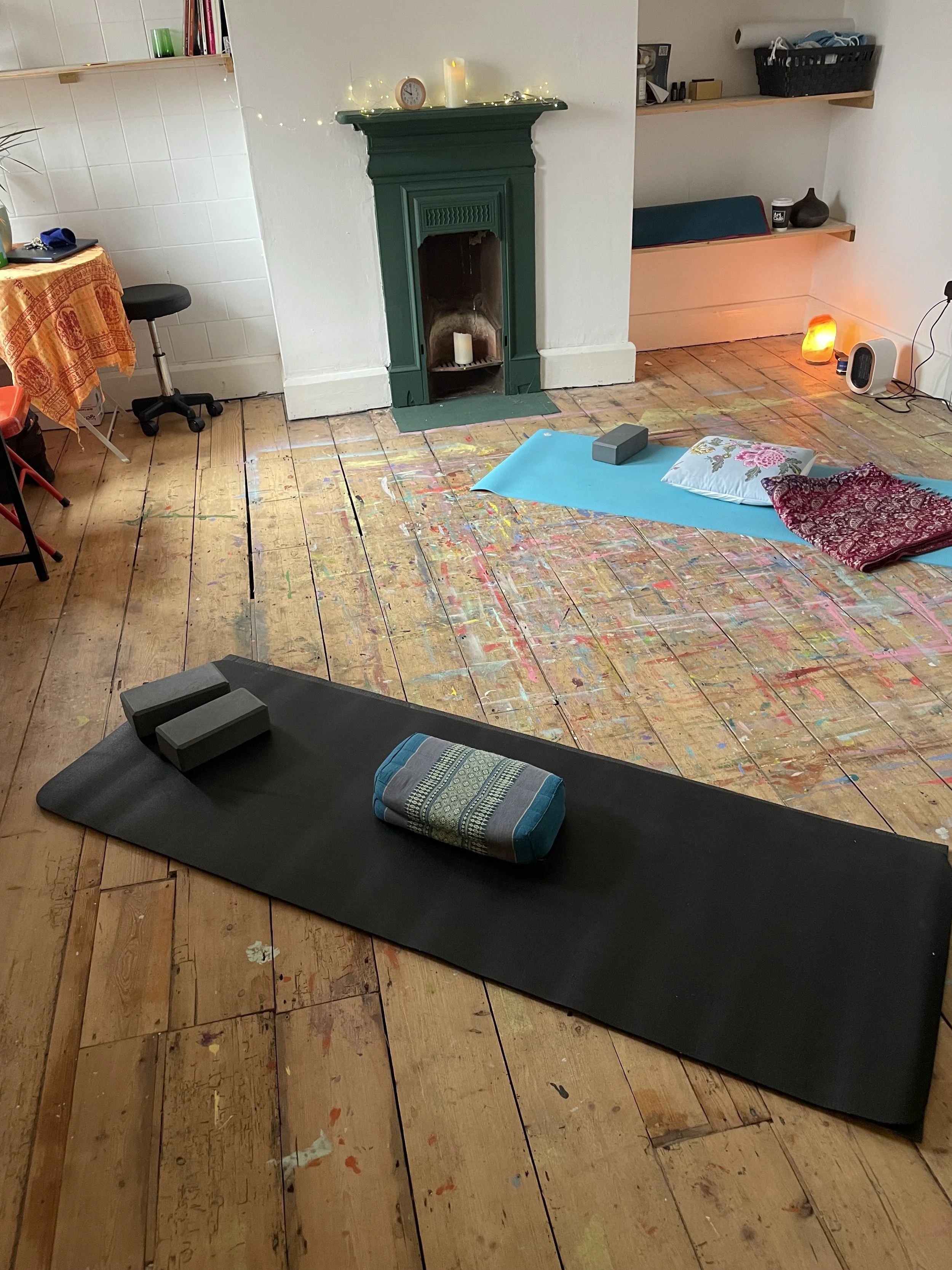 In yoga sessions, she offers accessible, grounding practices that prioritise breath, rest, and self-awareness over fixed outcomes. Sessions are paced gently and adapted to support different bodies, needs, and energy levels.